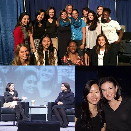 Left top: McGill student meets Sheryl Sandberg and gets a shoutout during Sheryl's speech (2015). Bottom: Attendees of GHC (2016).